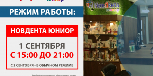 что 1 сентября наша детская клиника "НовДента ЮНИОР" – РАБОТАЕТ с 15:00 до 21:00!