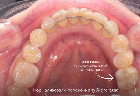 – Чтобы восстановить целостность ряда, хирург-имплантолог Касимов Р. Р. провёл имплантацию, а ортопед Пантелеев А. В. установил надёжную коронку.