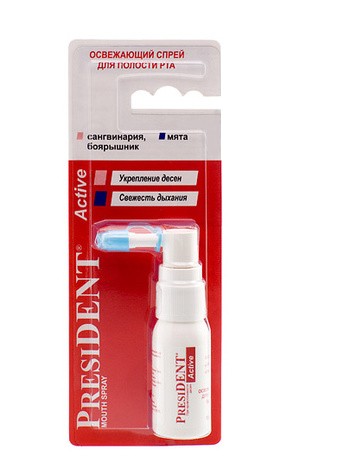 Лечебно-профилактический спрей с освежающим действием. Защищает от болезнетворных бактерий в течение дня, способствует укреплению десен.Содержиттриклозан, аллантоин, бисаболол, экстракты сангвинарии и боярышника.Не содержит спирта и лаурилсульфата натрия.