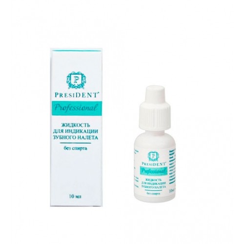 Жидкость Президент окрашивает старый зубной налет в бордовый цвет, а новый налет в розовый. После применения жидкость легко удаляется с помощью зубной щетки.