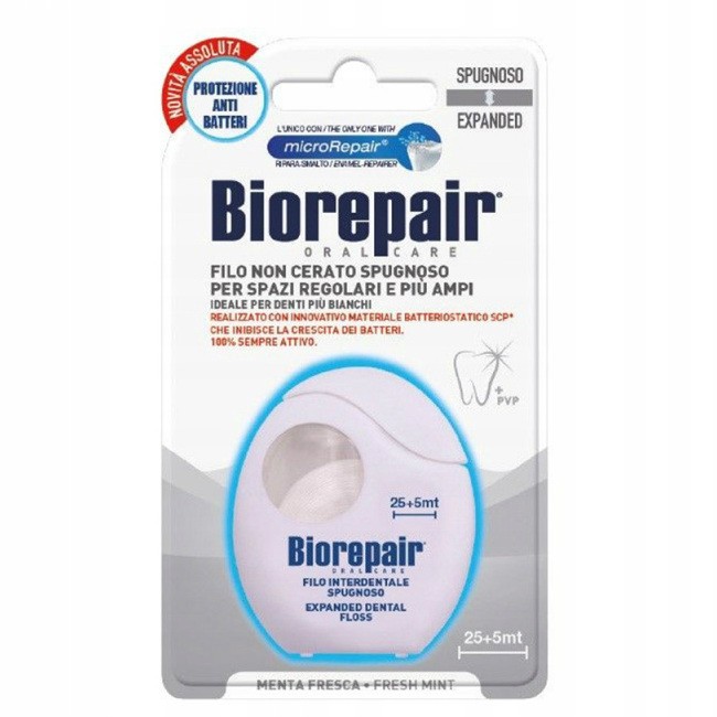 Зубная нить Biorepair невощеная губчатая 25+5 м