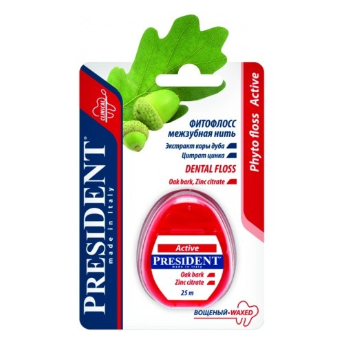 Зубная нить PresiDENT Active Фитофлосс, 25 м
