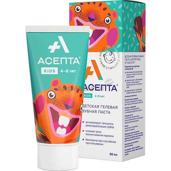 Детская гелевая зубная паста АСЕПТА Kids разработана с учетом возрастных особенностей ребенка. Она предназначена для бережного ухода за полостью рта детей от 4 до 8 лет.