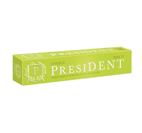 PresiDENT Unique — уникальная зубная паста без фтора. Специально подобранные абразивы безопасно и эффективно удаляют налёт, очищают и полируют зубную эмаль.
