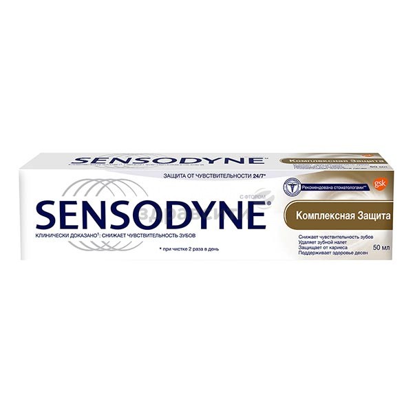 Зубная паста Sensodyne Комплексная Защита образует защитный слой на поверхности чувствительных участков ваших зубов для длительной защиты от чувствительности. Обладает всеми преимуществами ухода за полостью рта, которые вам необходимы, в одном комплексном средстве для чувствительных зубов. При чистке зубов 2 раза в день зубная паста Sensodyne Комплексная Защита также защищает от образования зубного налета и поддерживает здоровье десен.