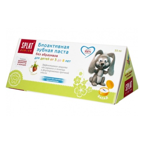 Детская зубная паста Splat "Junior. Запад" с ароматом клубники разработана специально для ухода за полостью рта для детей от 3 до 8 лет. В состав пасты входят натуральные компоненты, которые абсолютно безопасны при глотании.