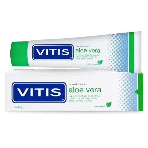 Vitis aloe vera яблочно-ментоловый вкус со фтором 1450 ppm зубная паста превратит утреннюю гигиену в настоящее удовольствие. Свежий аромат зарядит отличным настроением на целый день. Продукт произведен в Испании. С его помощью можно гарантировано обезопасить себя от появления кариеса и зубного камня. Паста мягко и бережно счищает налет, даря зубам красоту и блеск.