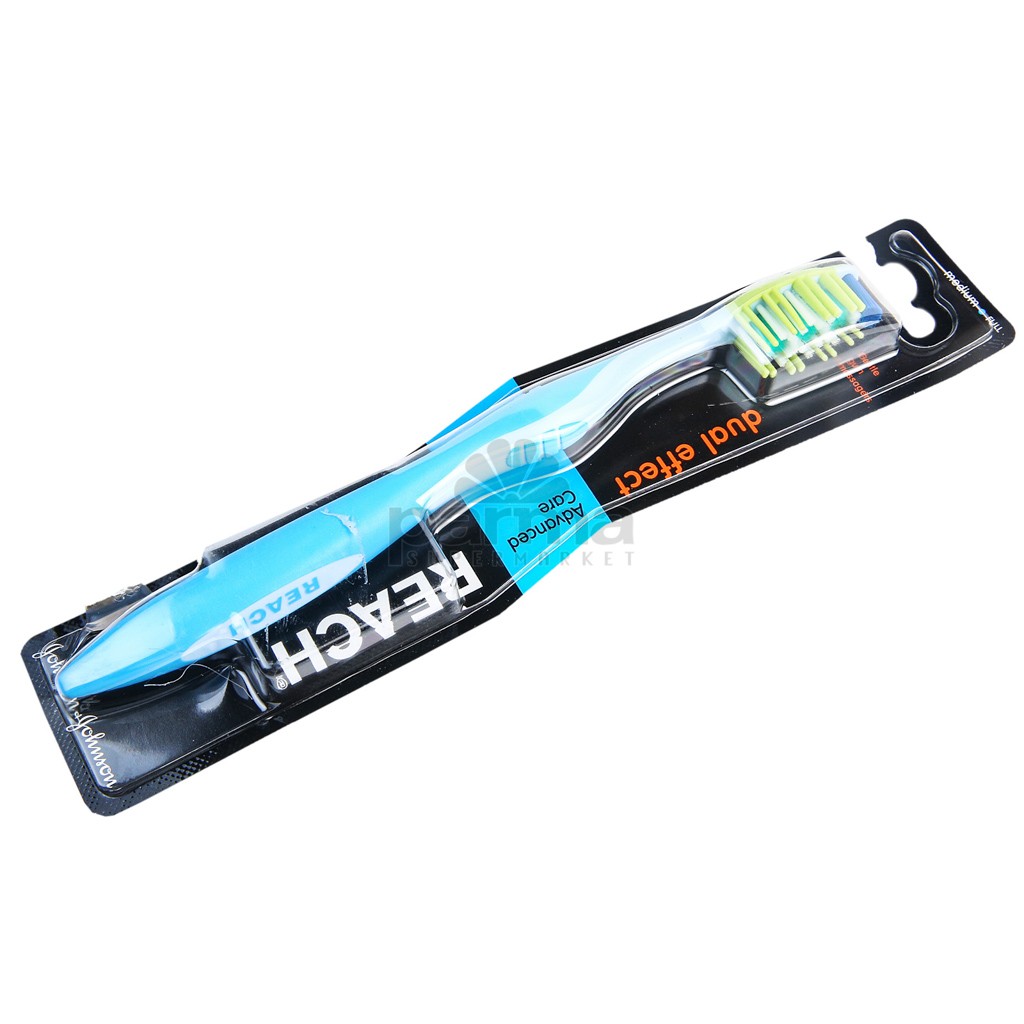 Чтобы ежедневная чистка зубов была максимально простой и эффективной, Reach советует воспользоваться зубной щеткой Dual Effect Advanced Care Medium. Инструмент со щетиной средней жесткости и расположенными по краю головки резиновыми стимуляторами идеально справляется с чисткой в труднодоступных местах, очищением и массажем десен.