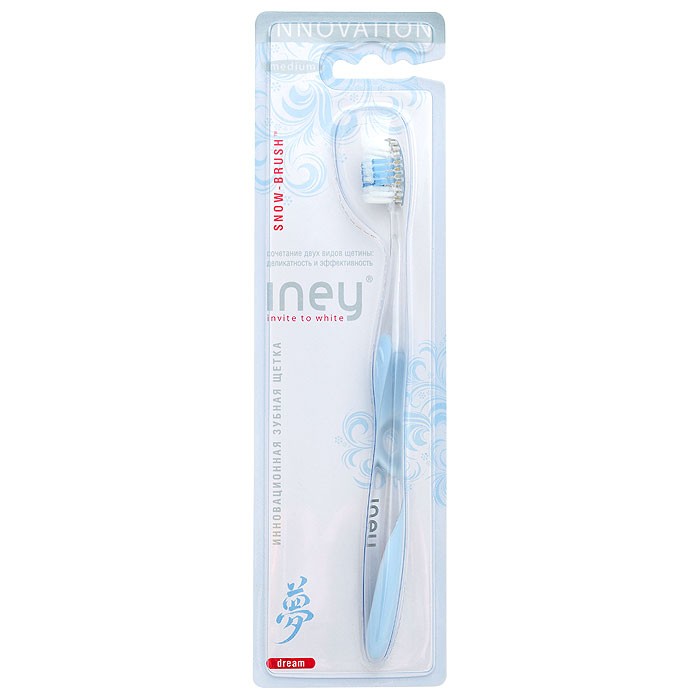 Инновационные щетки INEY snow-brush специально разработаны для бережного очищения зубов и ухода за дёснами и представлены (как и паста) тремя видами: