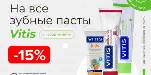 Сейчас на весь ассортимент паст действует скидка 15%!!! Это отличная возможность подобрать идеальный уход для всей семьи и сэкономить на покупке. Загляните в наши стоматологические бутики, чтобы купить пасты VITIS по выгодной цене.